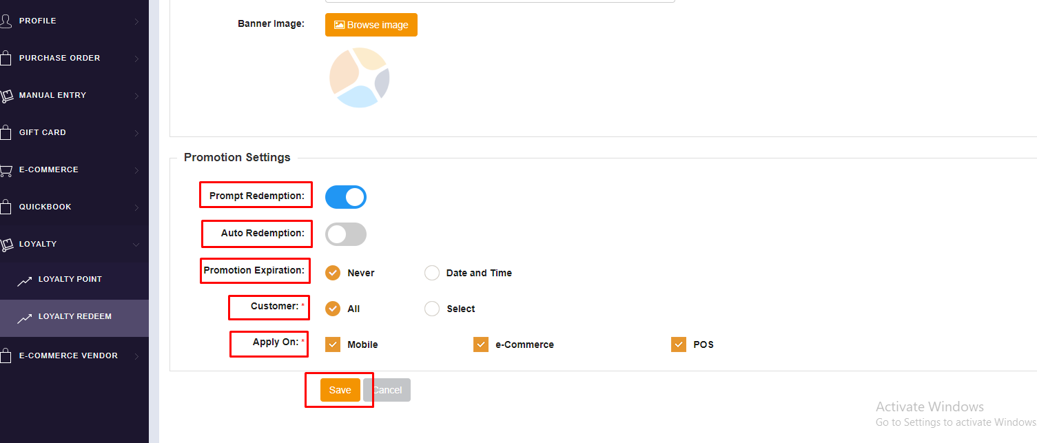 ● Auto Redemption: You can select this option when you want to run your loyalty redeem automatically.