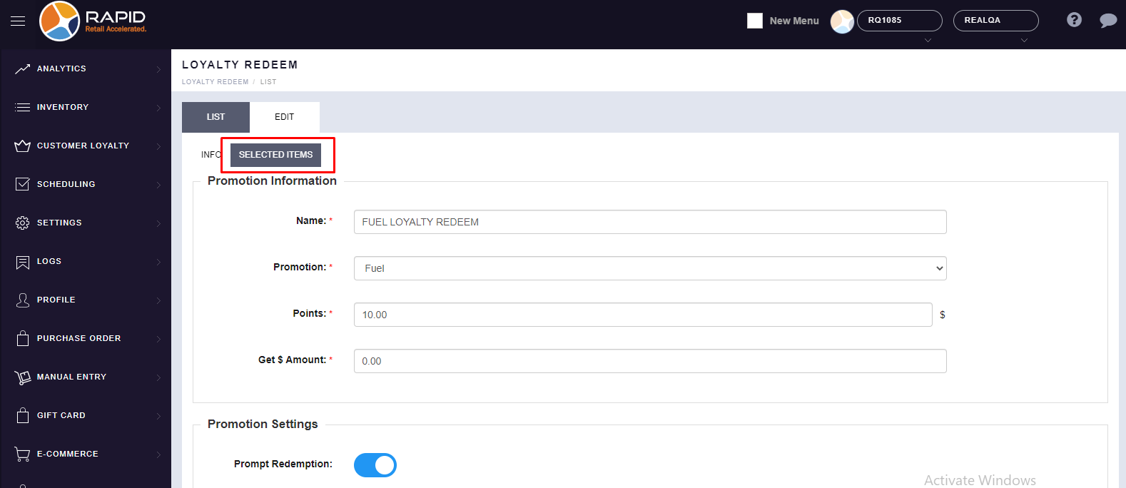 ● NAME: You can put your Loyalty Redeem Name. (For Example : FUEL LOYALTY REDEEM)