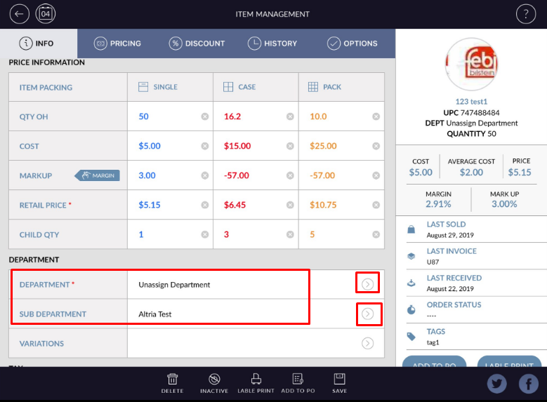 Here are the steps on how to manage your Department/subdepartment in an item.