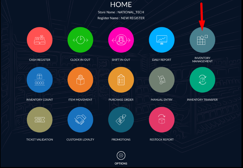 - Select inventory management from the Dashboard.