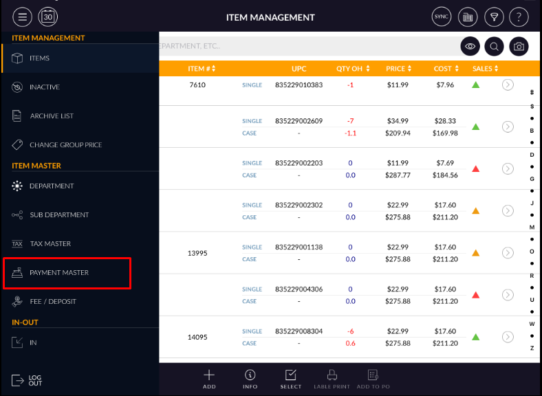 - Select payment master from the item management menu from the top left corner.