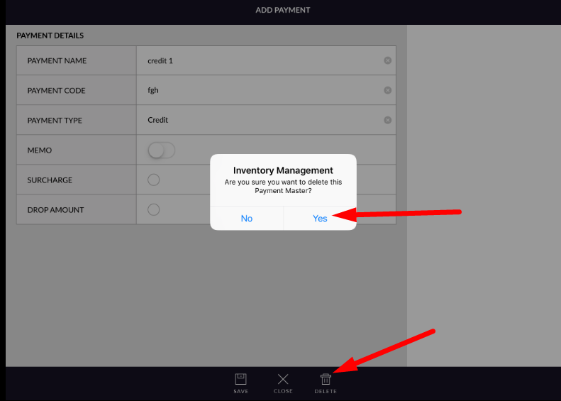 - When want to delete already exist payment then open that payment in edit mode and click on the delete button. And click on yes then payment will be deleted.
