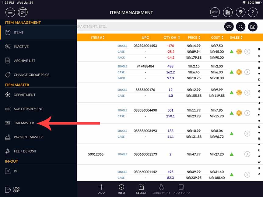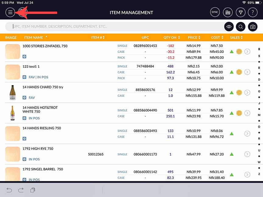 - Click the Item Management menu icon.