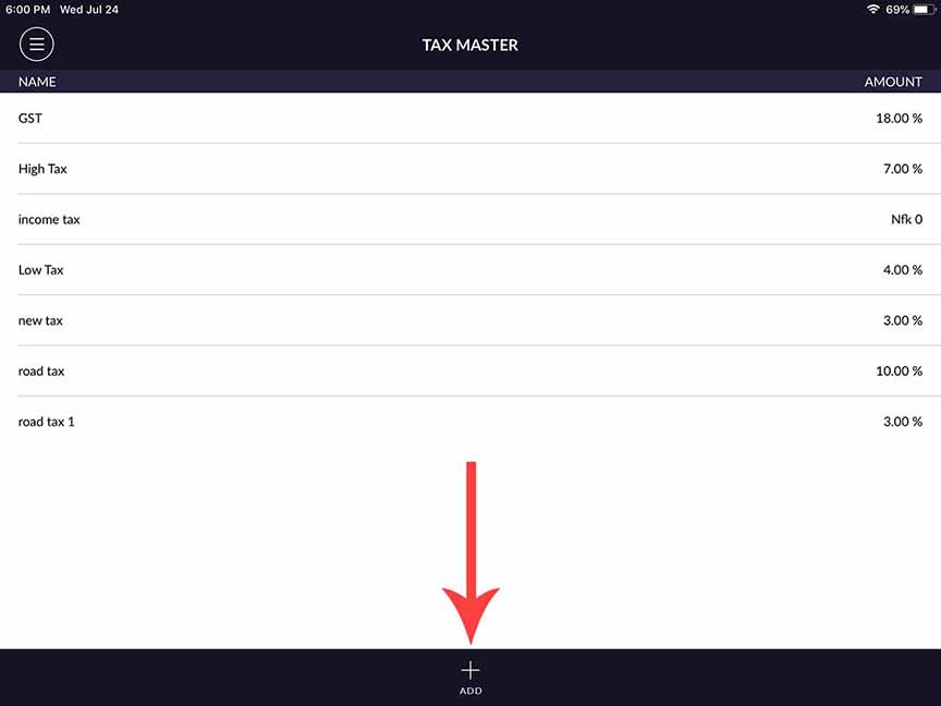 Tax master is a module in which you can add a new tax, Edit existing tax and delete tax.