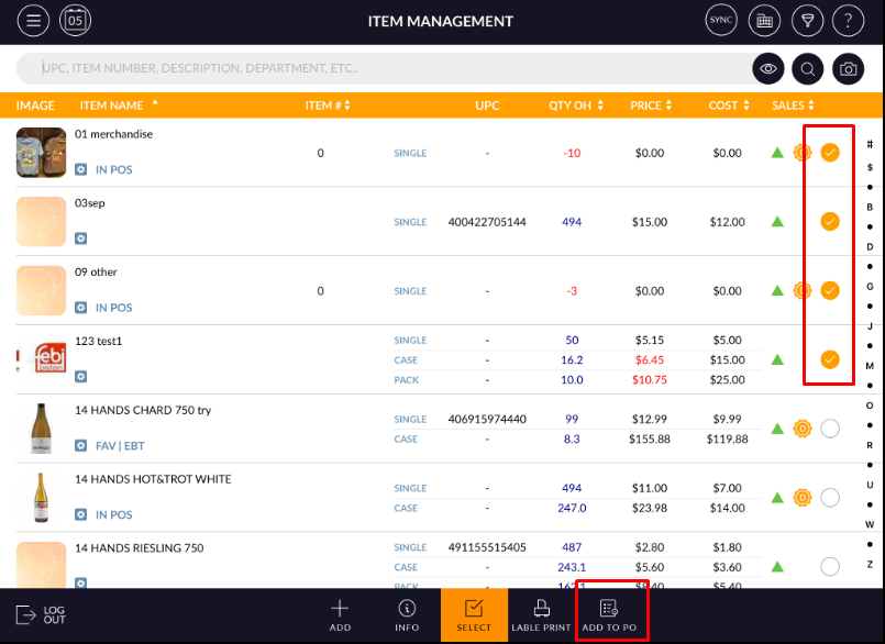 - Selected items will be added to PO list.