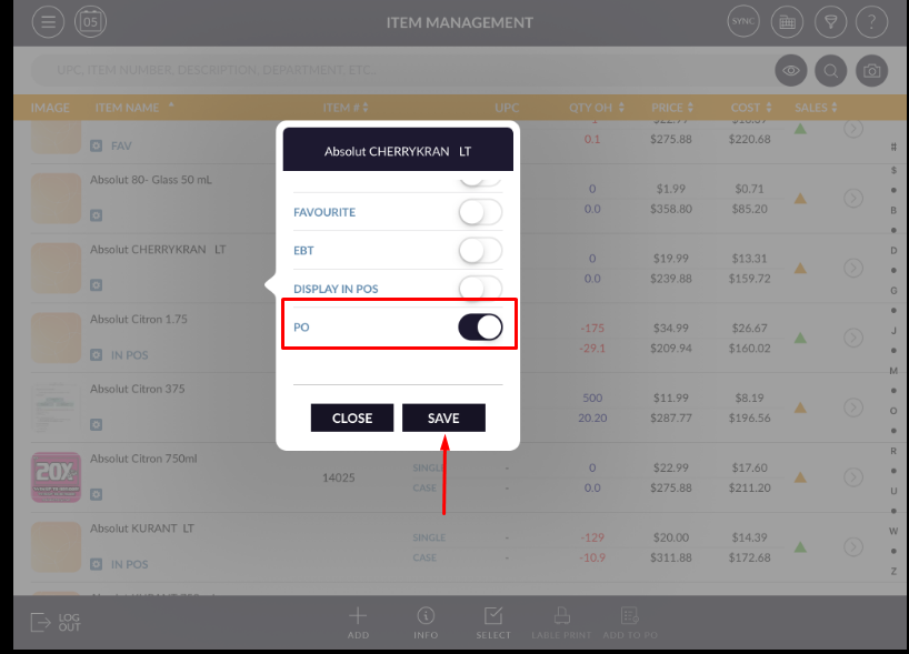 - Item will be added to PO list.