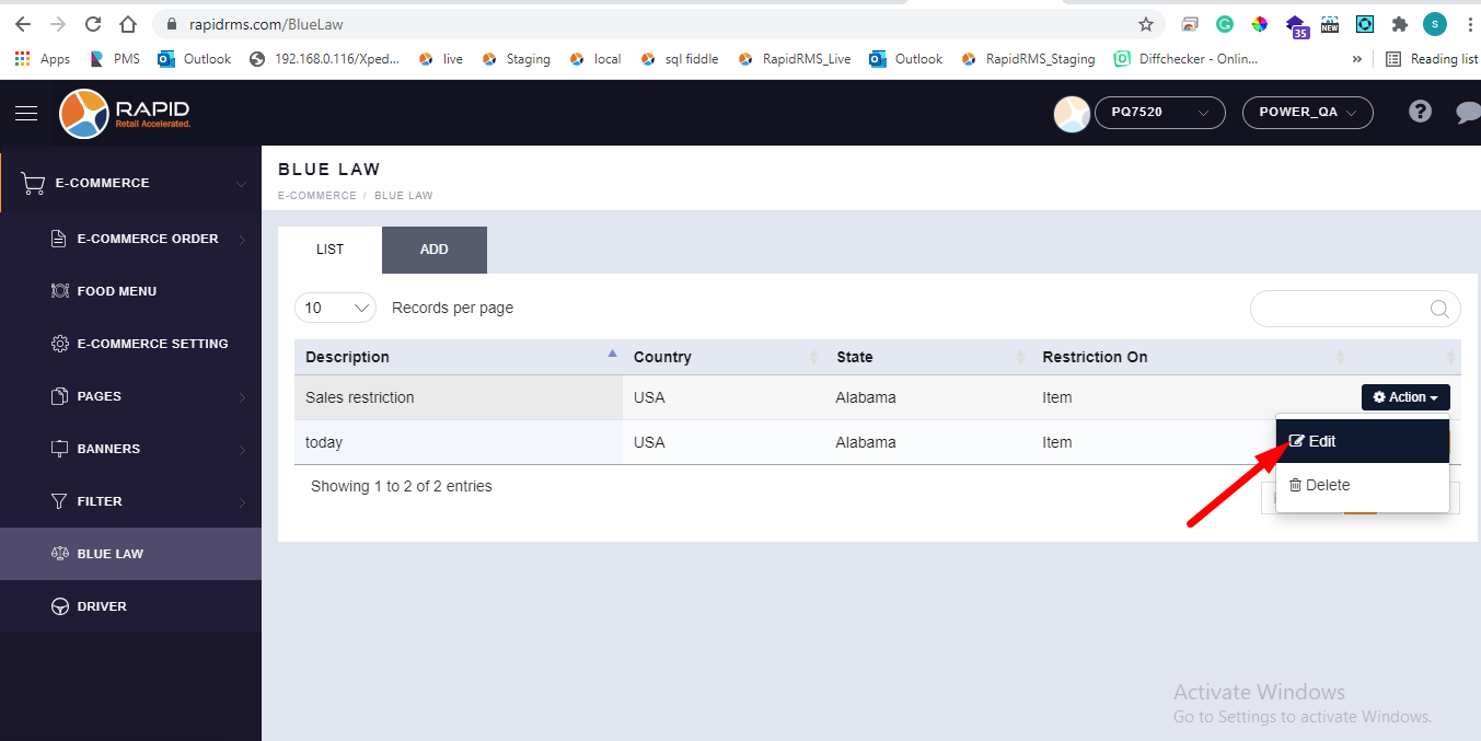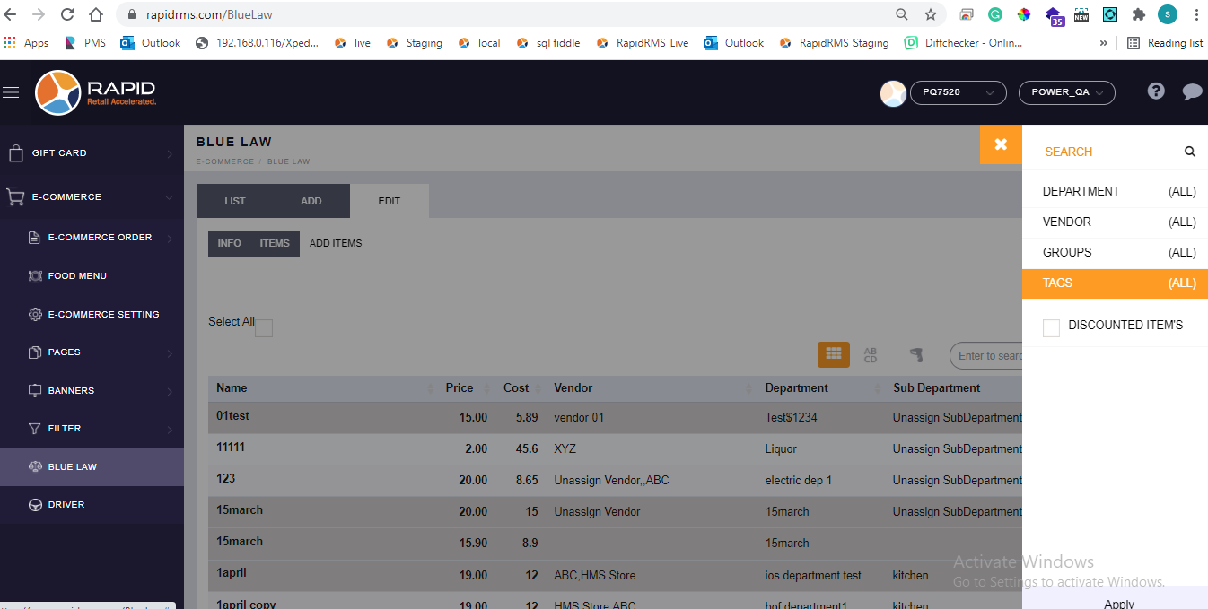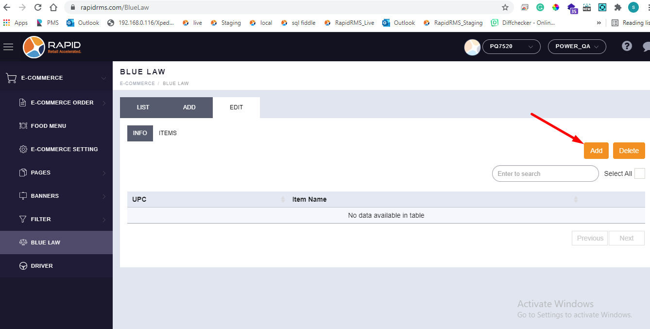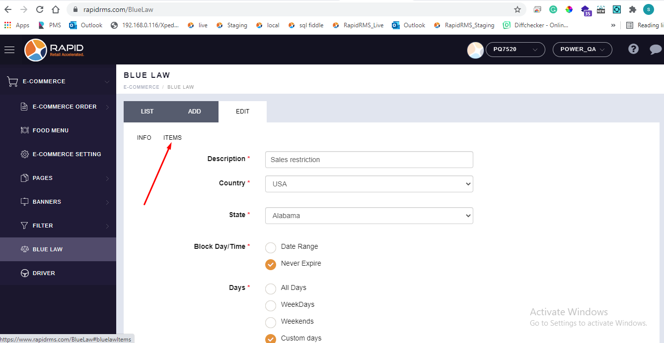 - Go to blue law tab.