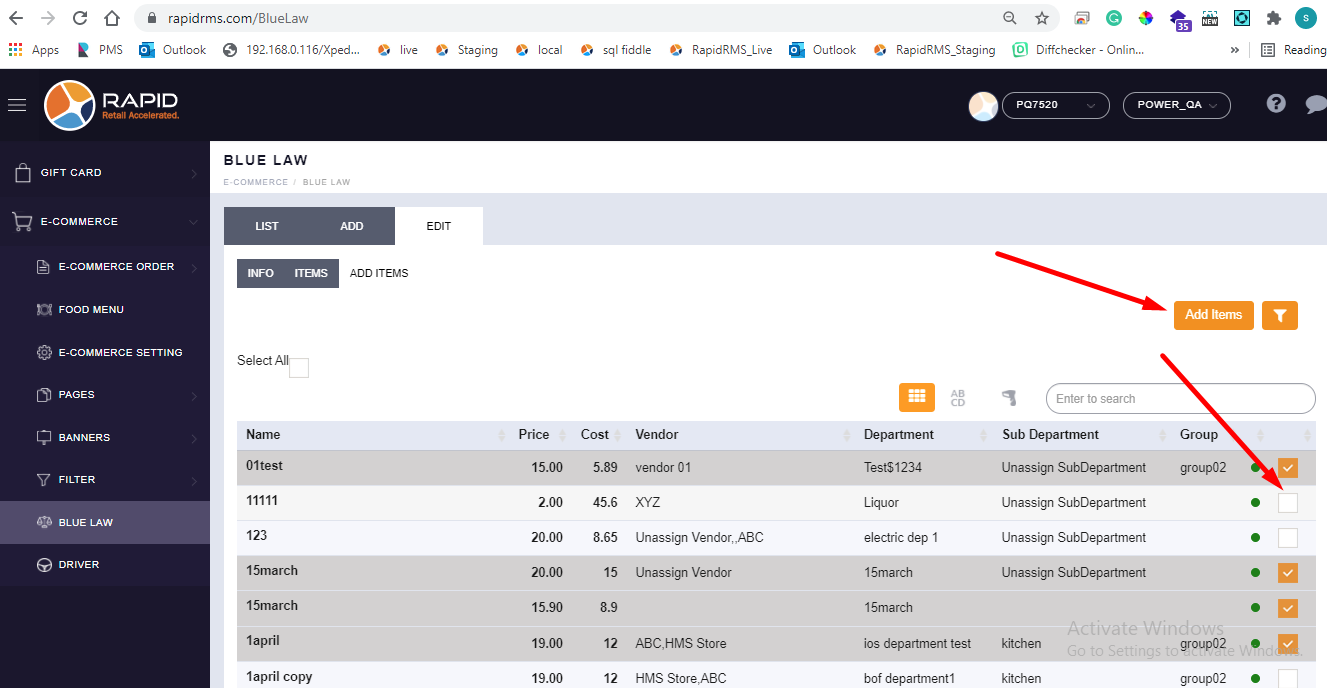 - Select items which you want to put under sales restriction and click on add items.