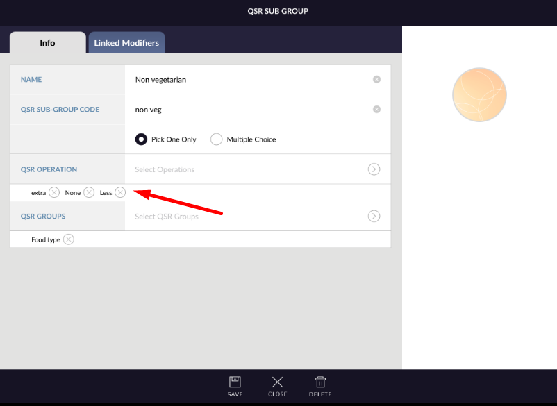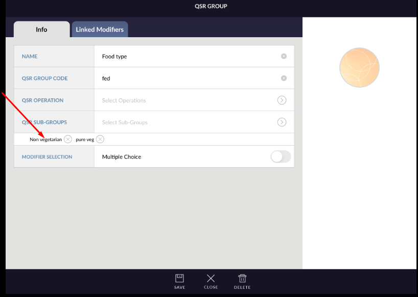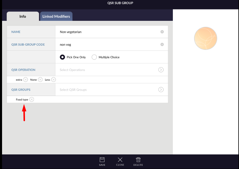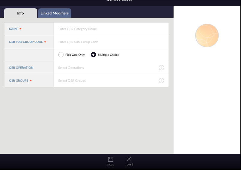 - First is QSR sub group name. This is text field. Add proper name for QSR sub group.