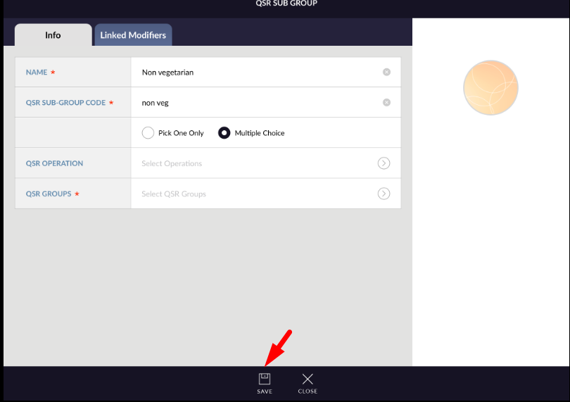 - With these two option QSR sub group can be save by save button which is available at the bottom of