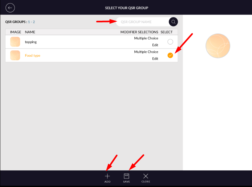 - All available qsr group will listed.