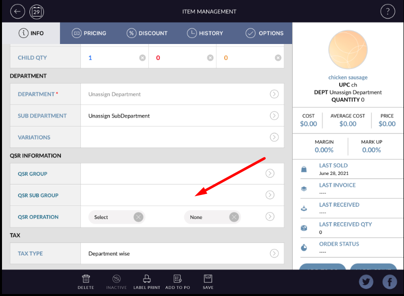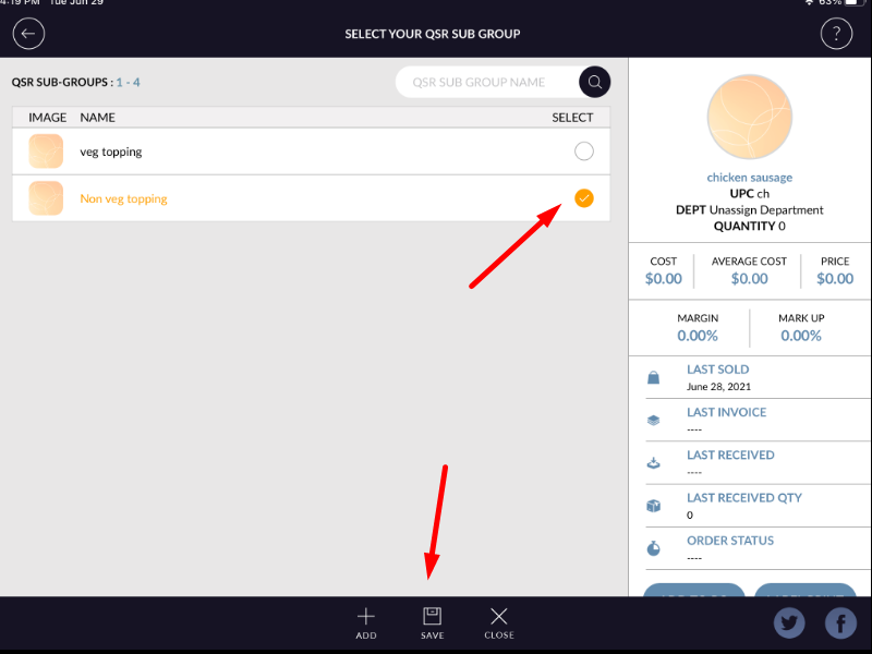 - Note that at a time only one qsr sub group can be added in one modifier item