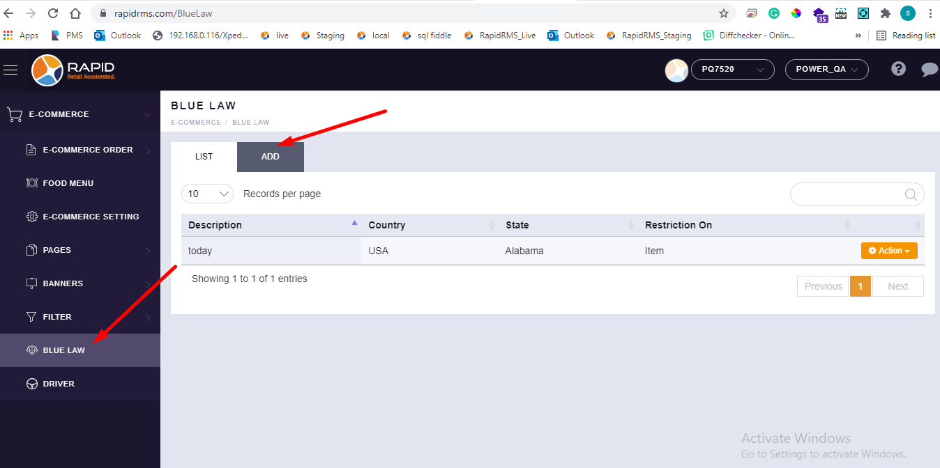 - When open blue law Then all available list display.