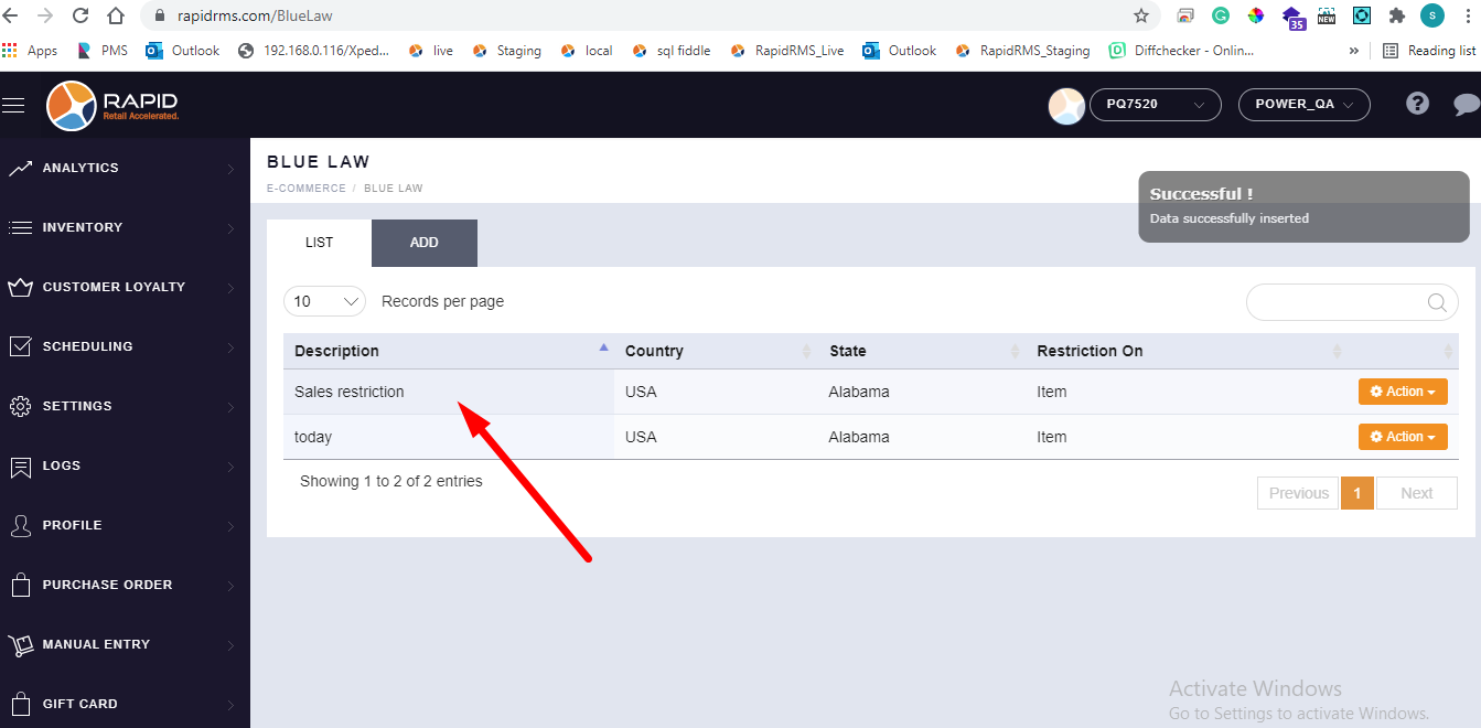 - New entry for sales restriction will set in list.