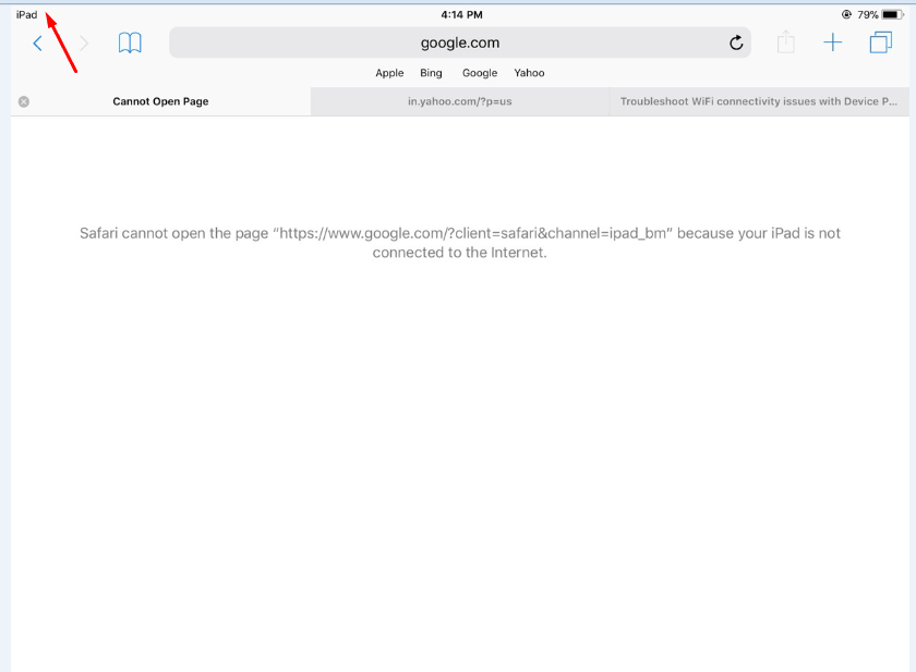 - In the title bar of the iPad, there is no ant symbol from the internet would display that means