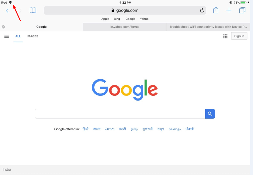 - In title bar there is a symbol for wi-fi should display that indicates the iPad is connected to