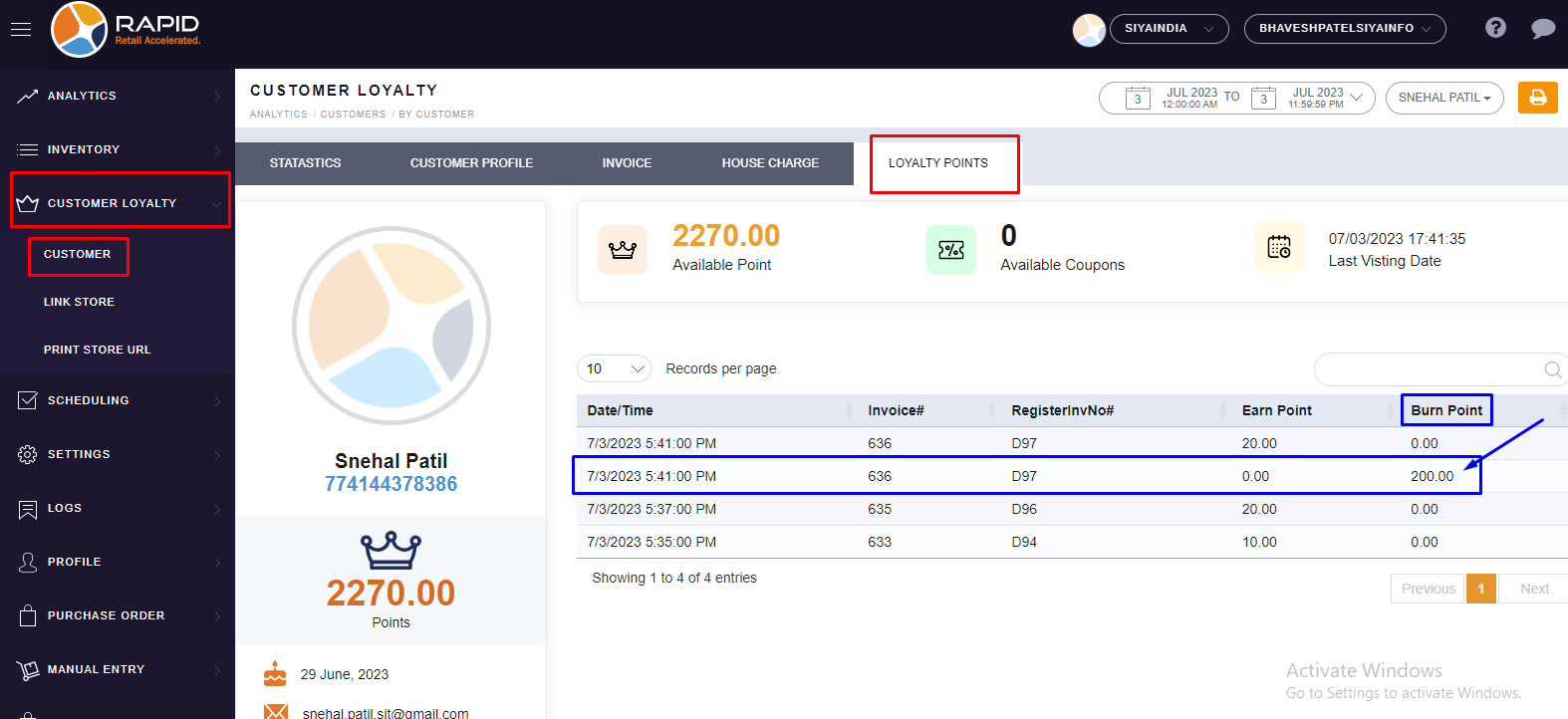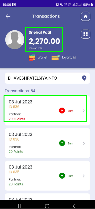 Now customers can see their earn point on his/her mobile application in transaction history.