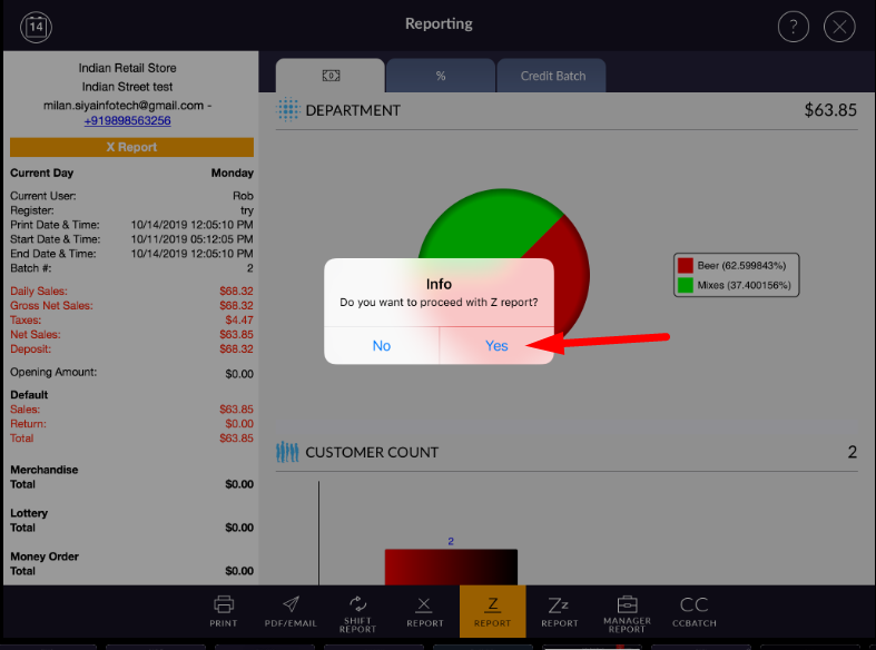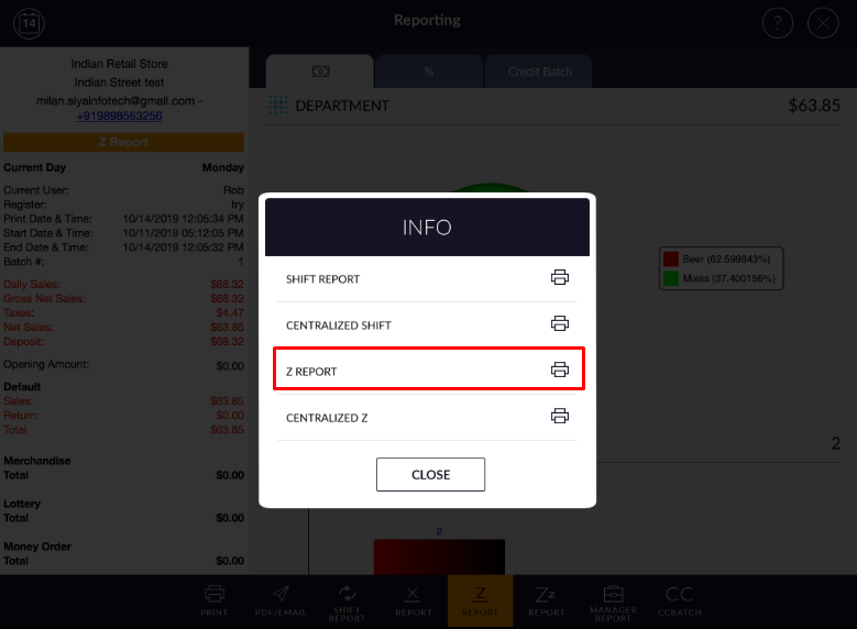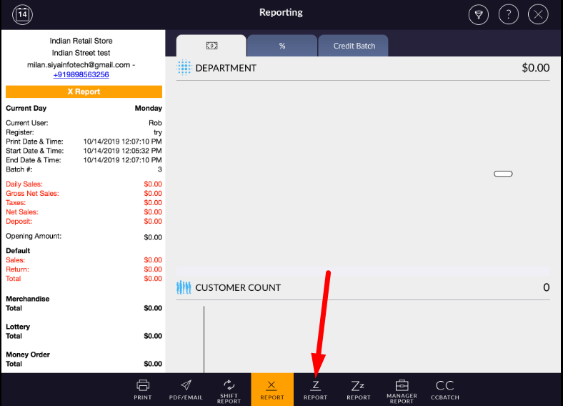 Z Report:- When you apply z, all x data will be reset and report will move into Z history. Generally, z is applied at the end of the day to review daily report data and detail.