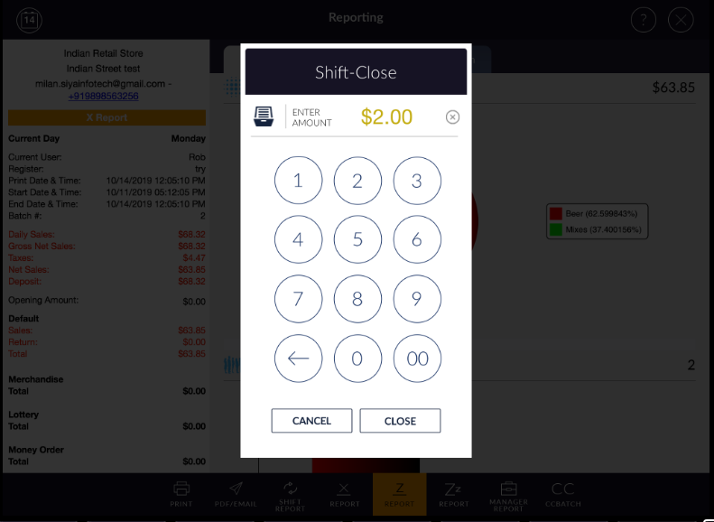 - If you have any open shift or pending shift to close, it will ask you to close the shift.