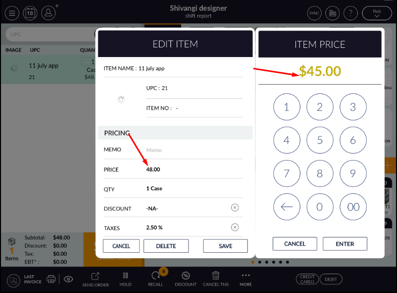 In RCR when item is ring up and price changed by swipe item then this count is consider in price change