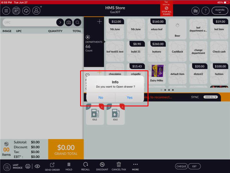 - Popup message will be display on screen with “Do you want to open drawer?” Click on
