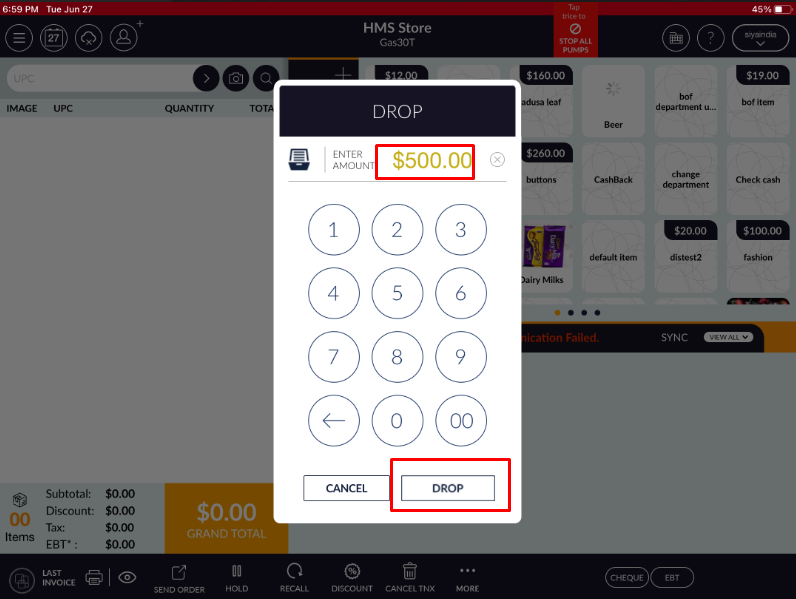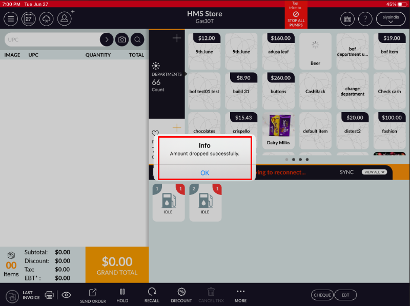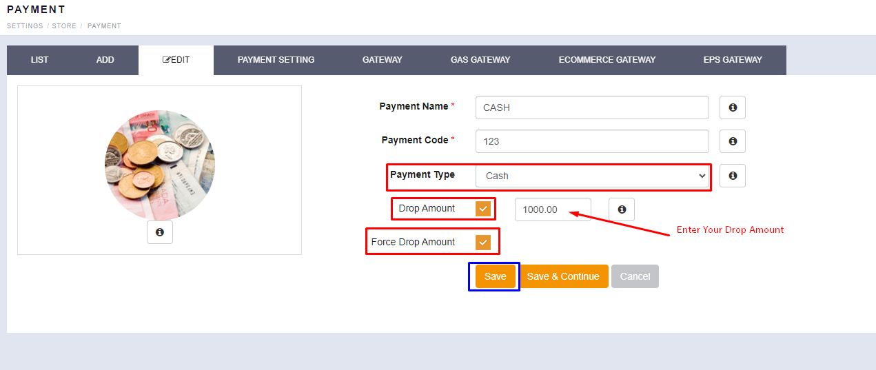 NOTE : Drop Amount will be work in both mode (Online & Offline).