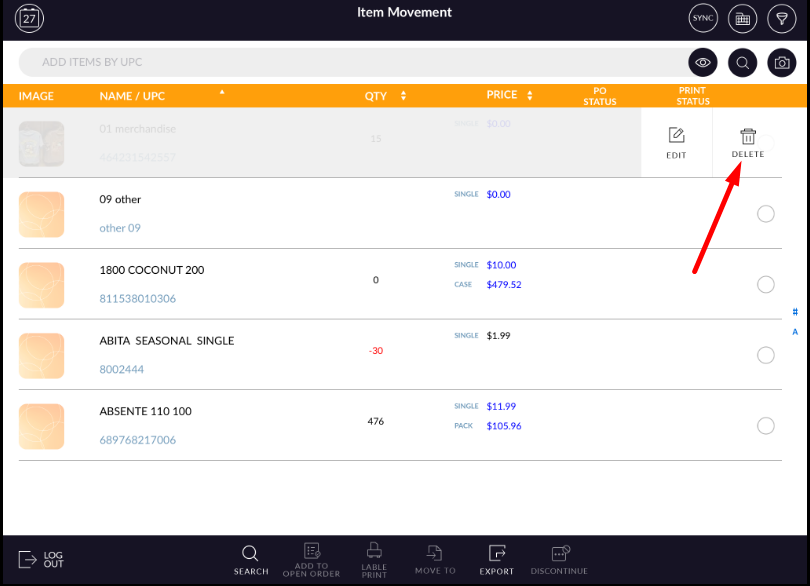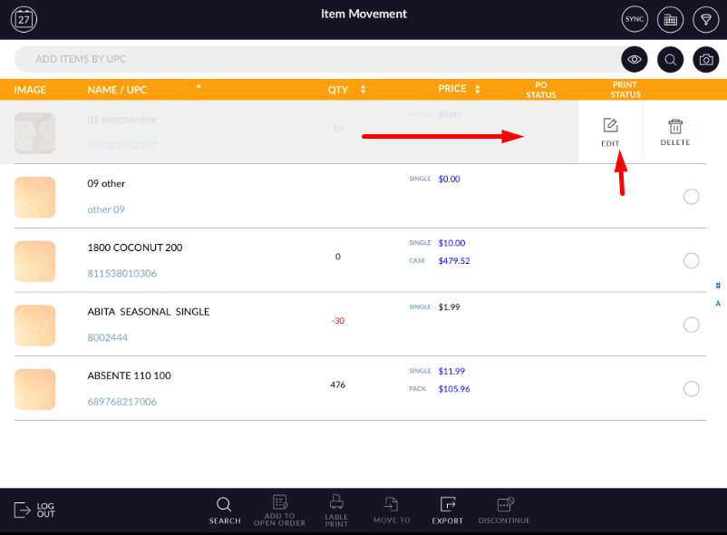 When you want to edit or delete items which are available in item movement list, then the item you edit will