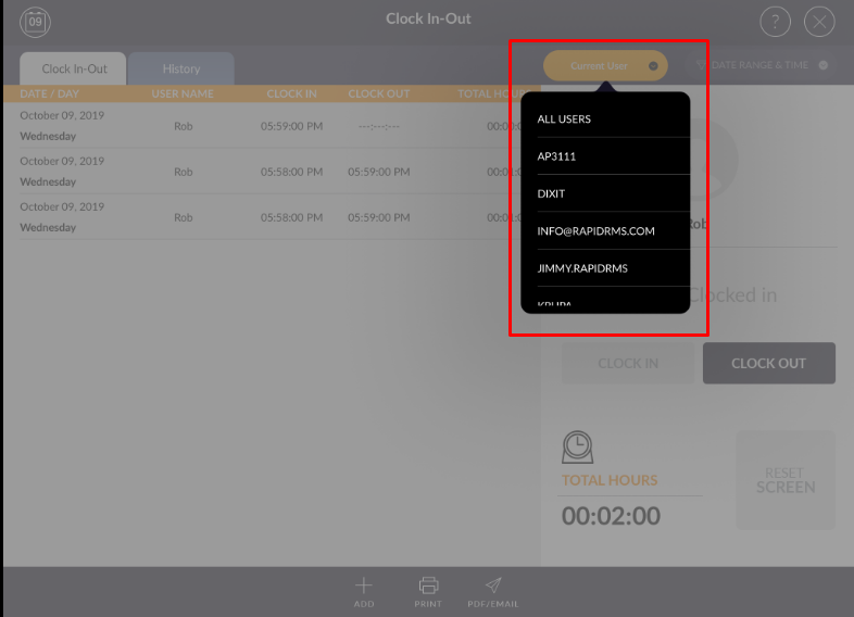 In clock In-Out when want to filter by the user then it can be possible in a Shift In-Out module.