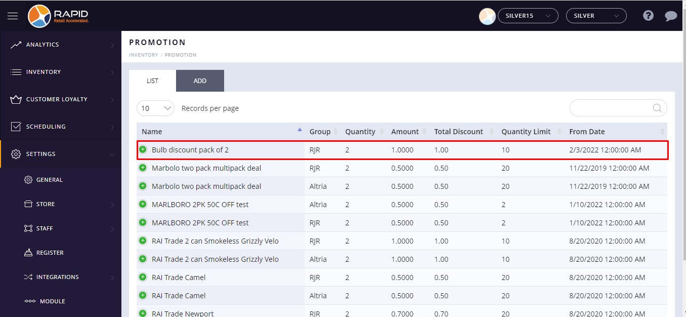 - Select the existing third party discount from the list.