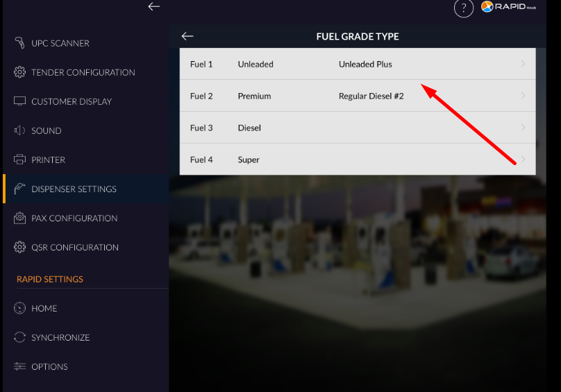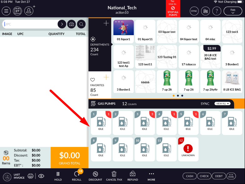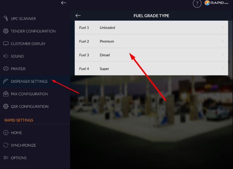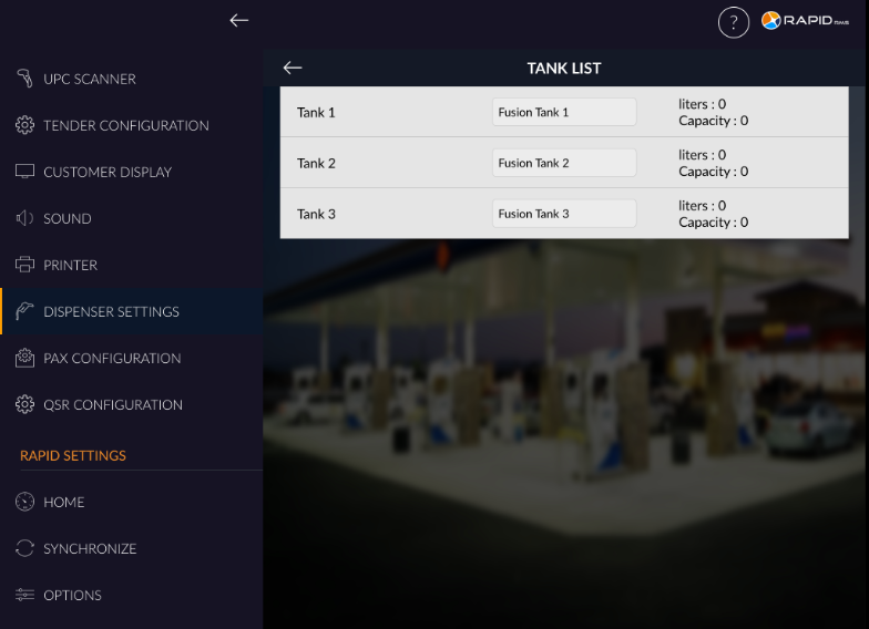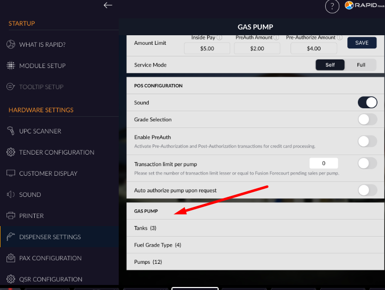 In gas pump section there are detail about tank fuel grade and all pumps.