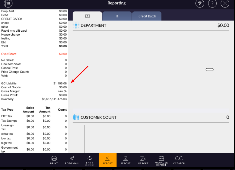 GC Liabilities is total Amount or balance of Gift Card sold to customer in all the register.