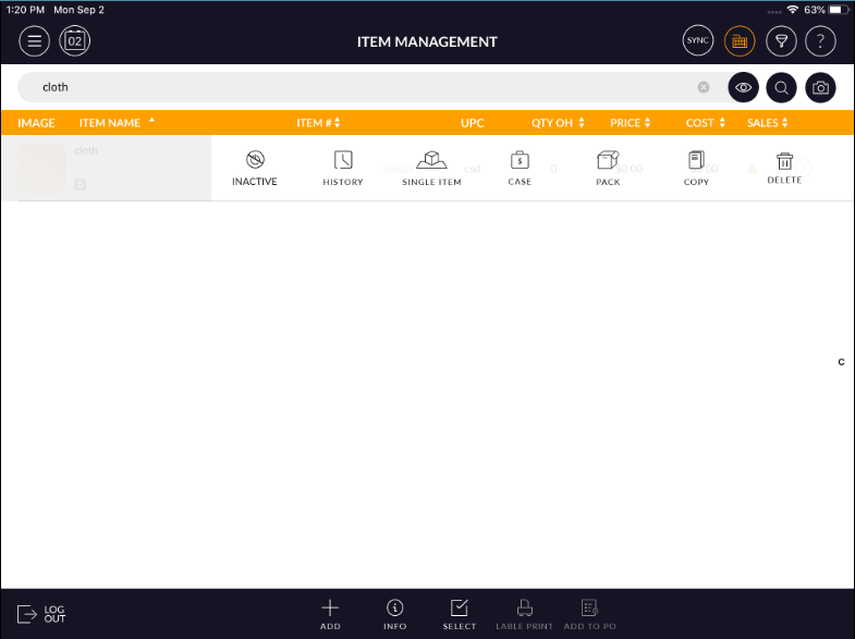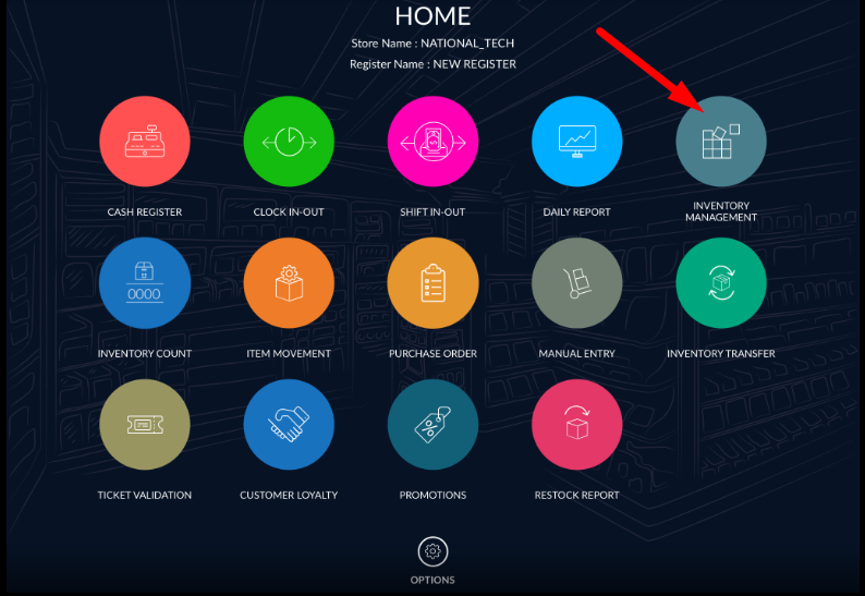 - Select inventory management from the Dashboard.