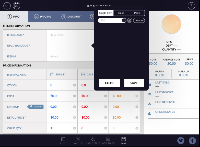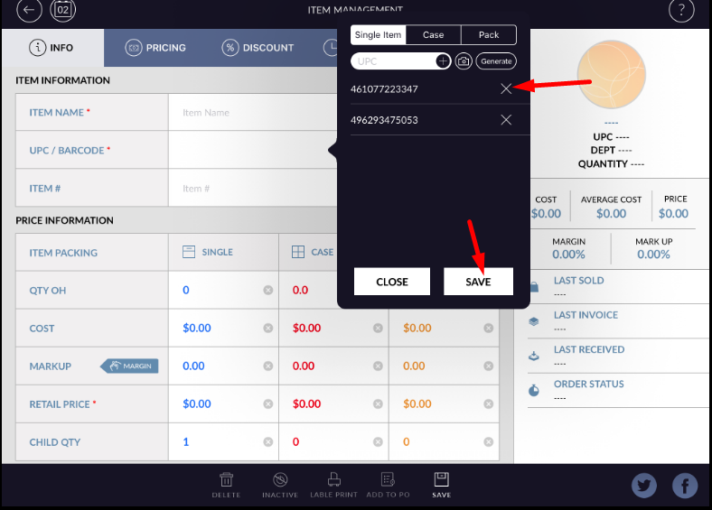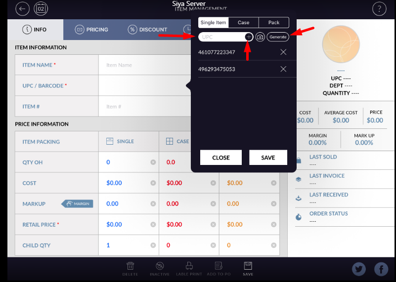 - Click on the barcode/UPC field. One window will open.