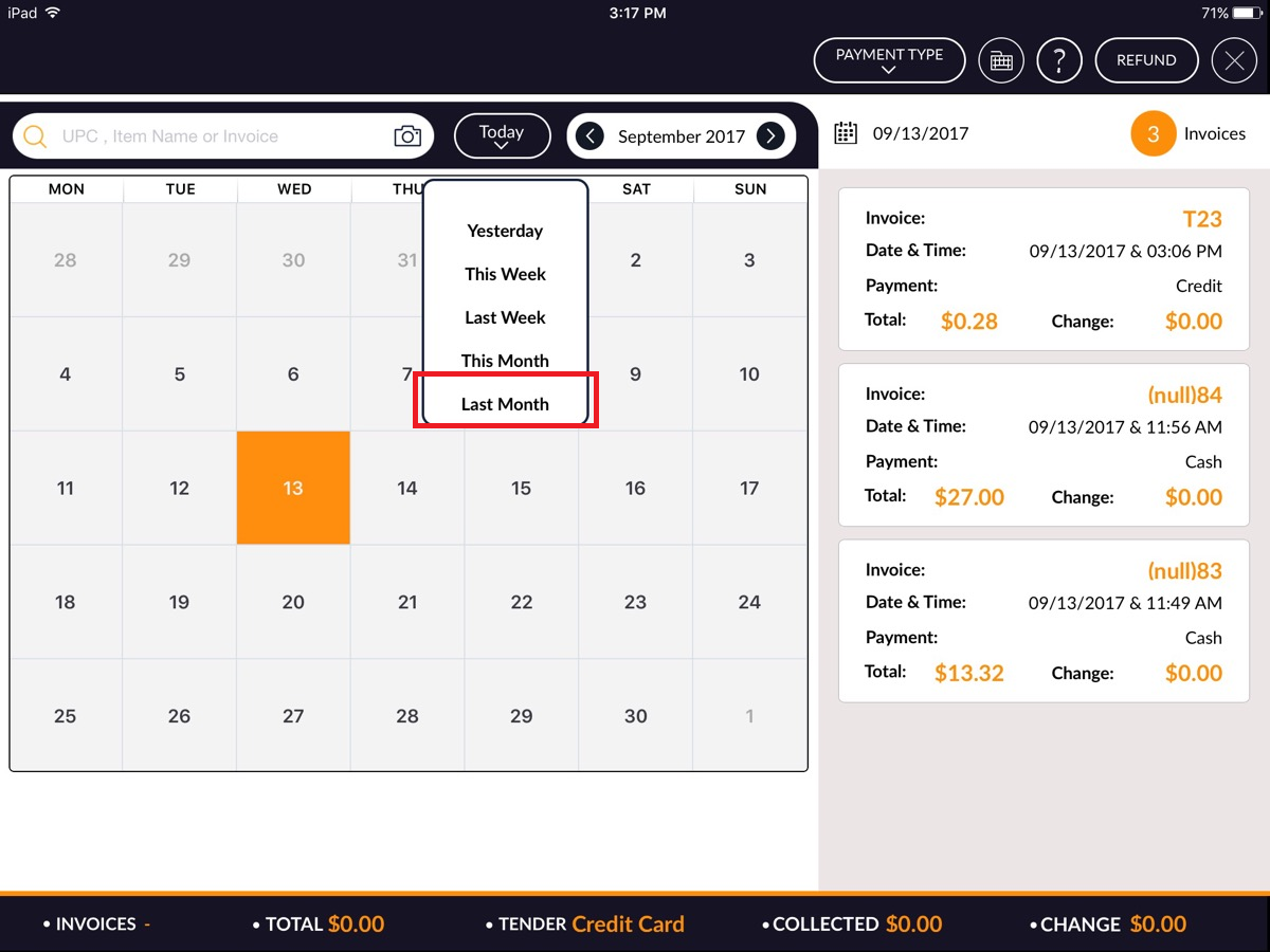 - Let suppose you want to see last month invoice then apply option ‘last month’.