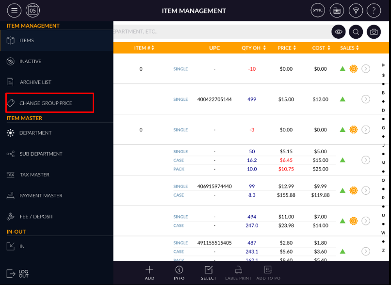 Group price change is a module by which you can change price and cost of item(S) in bulk or individual by