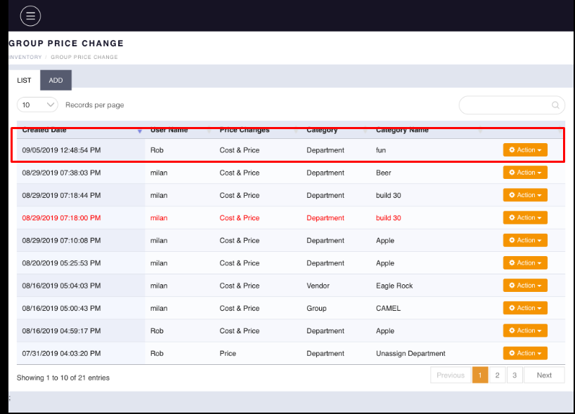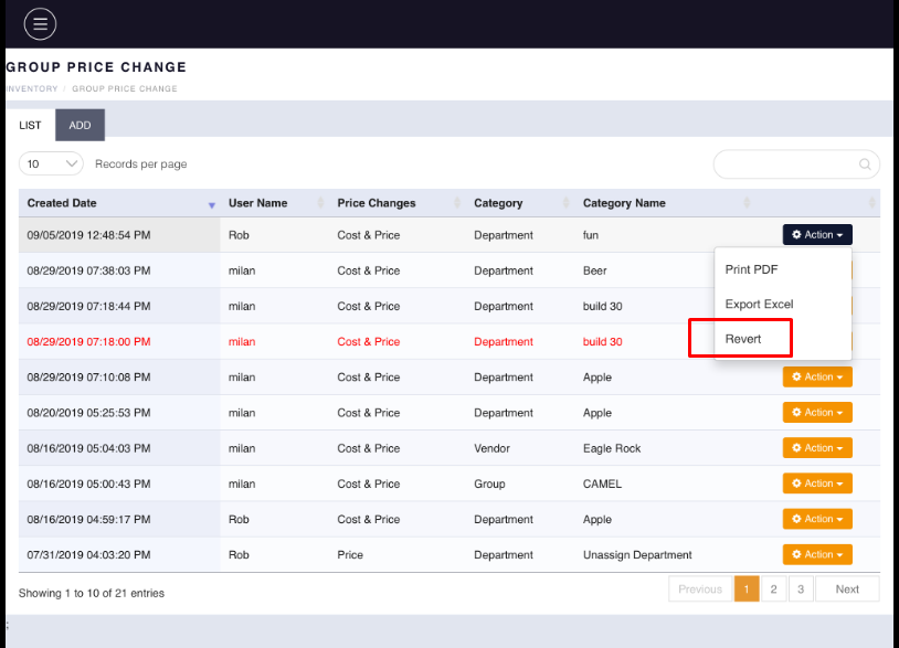 - Click on the action button and apply revert. Your price change will revert and item get the old price.