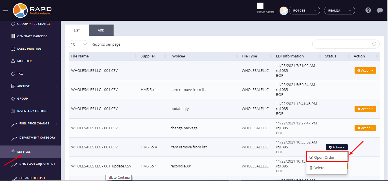 - Go to the list page and from there you can open any EDI order in edit mode.