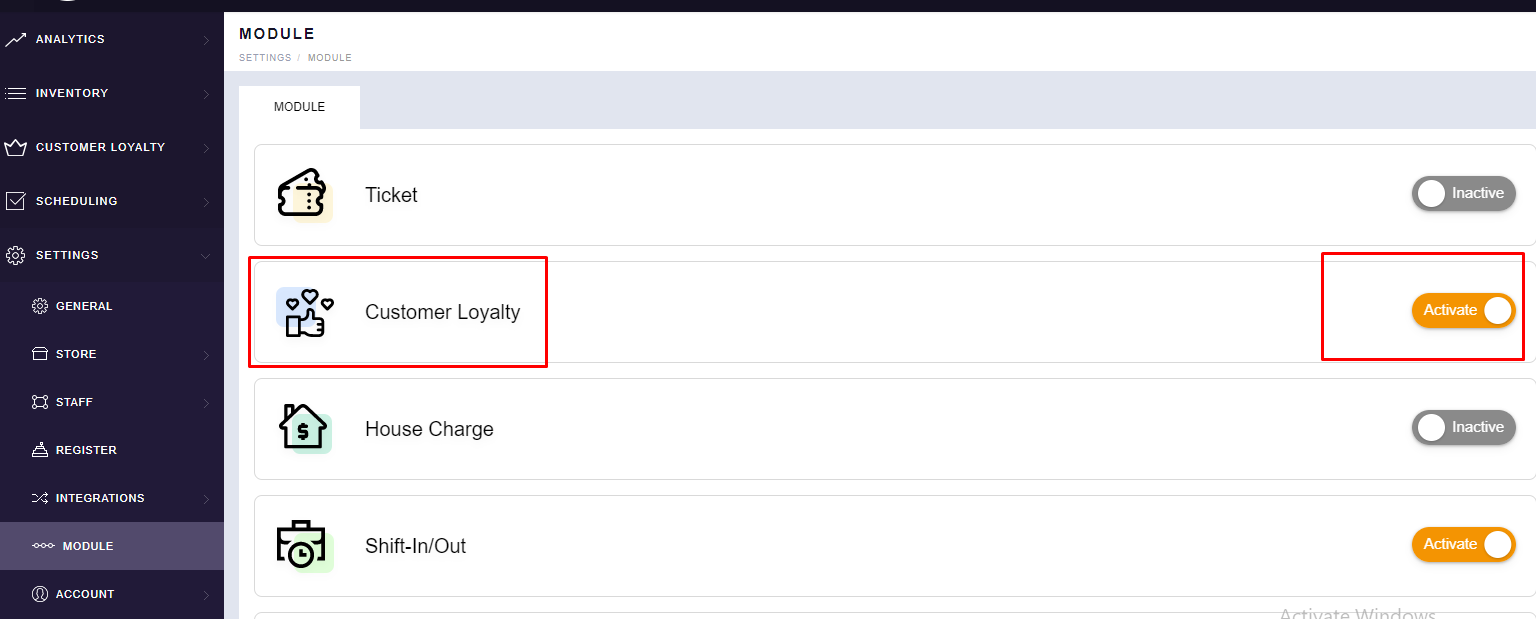 - Now from here, you can activate the “Customer Loyalty” module with the help of the
