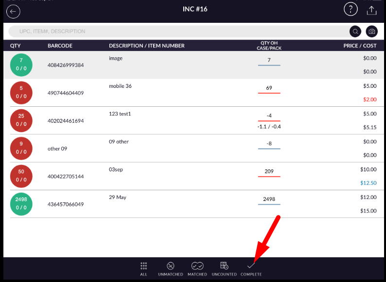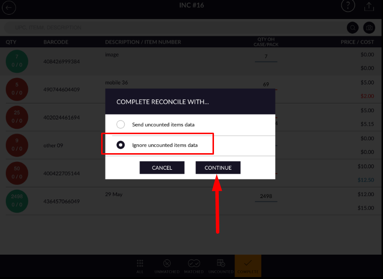 - If you select “Ignore uncounted data” Then only counted item qty change, uncounted item QTY OH will