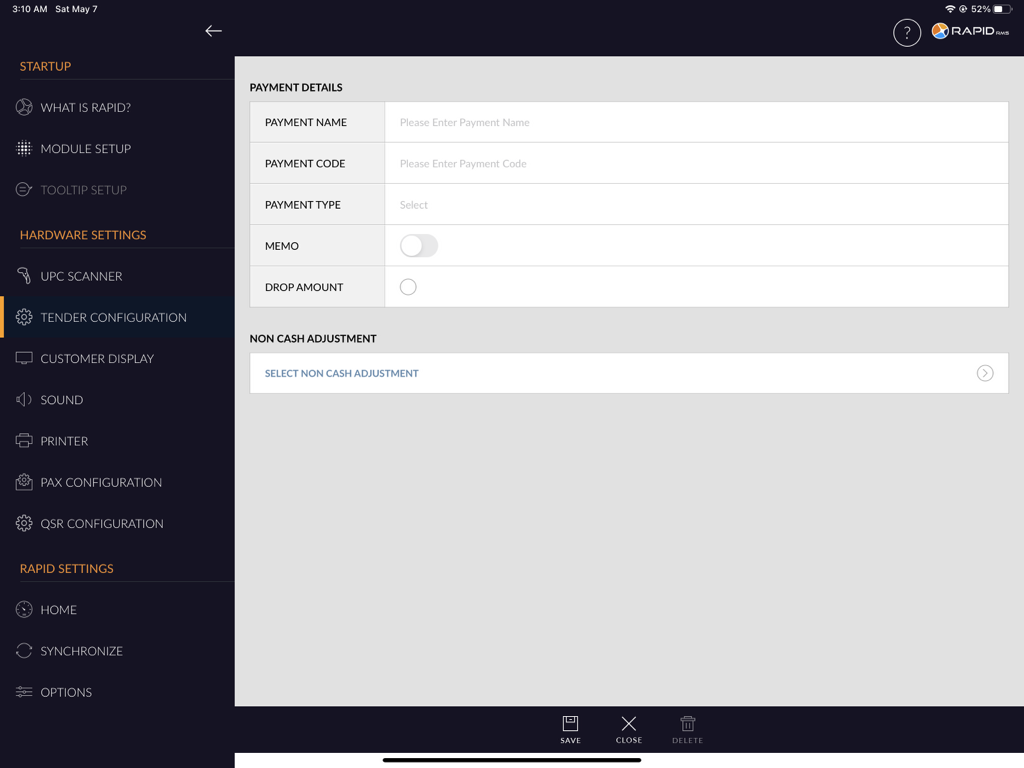 | Payment Name | It describes the name of the tender. Payment name is a mandatory field. |