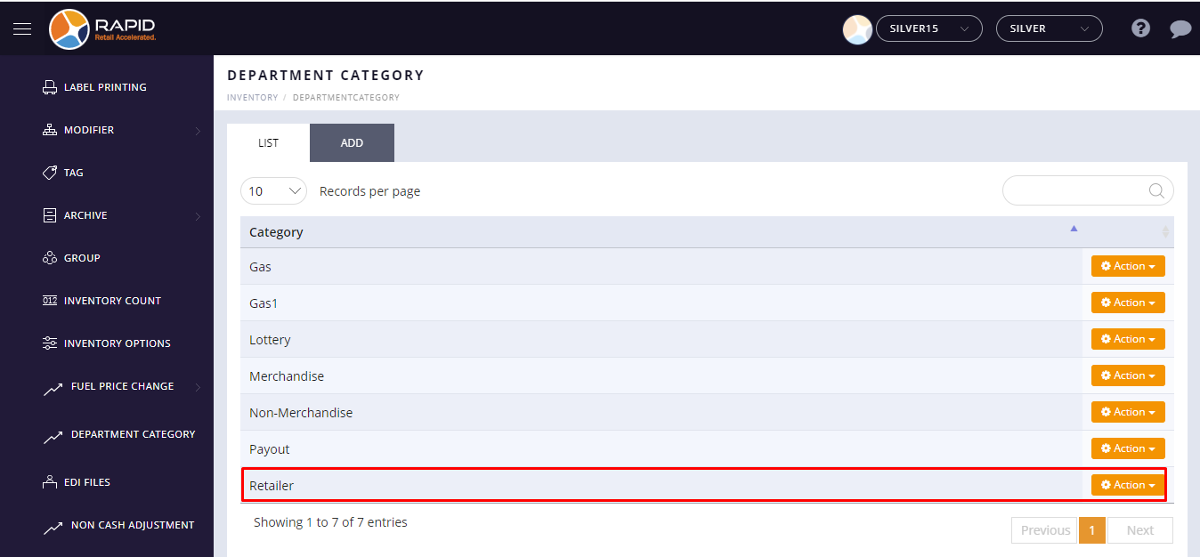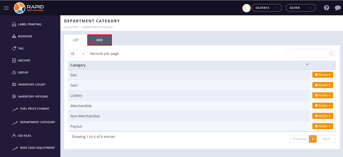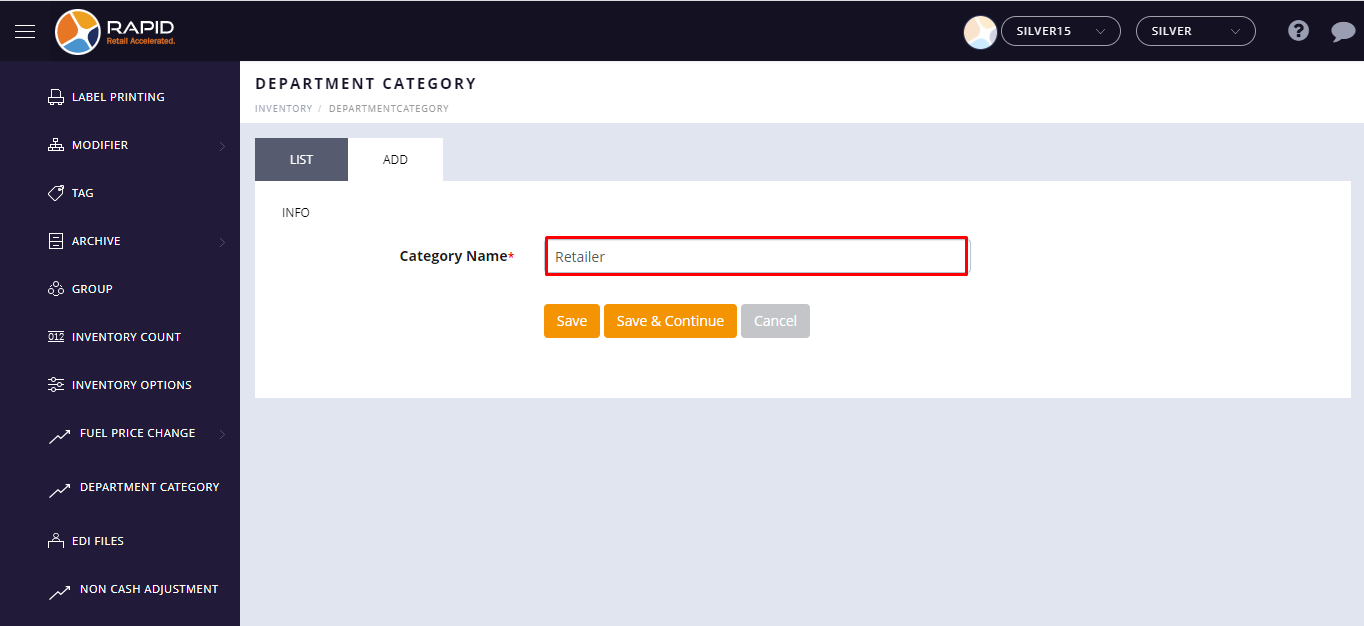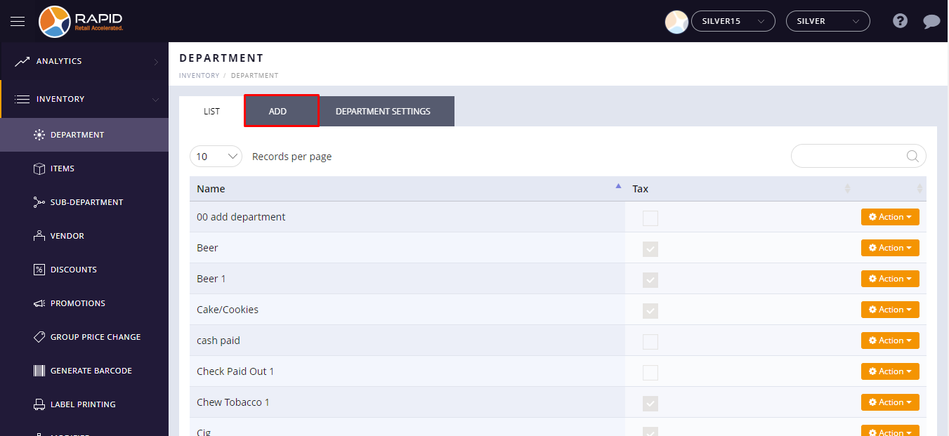 (located on the top right side) - Tap Inventory > Department Category option.