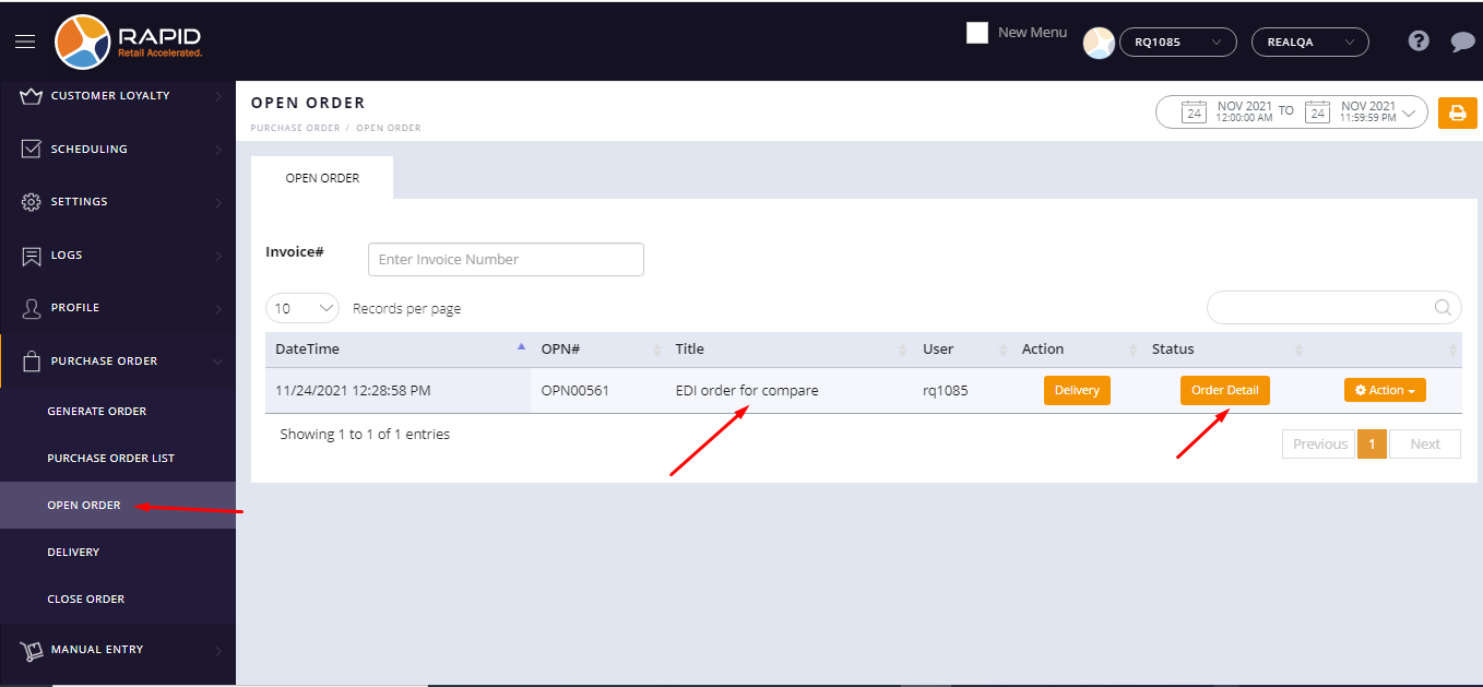 If stores have an existing order and want to compare order and receive qty then they can use the ‘existing