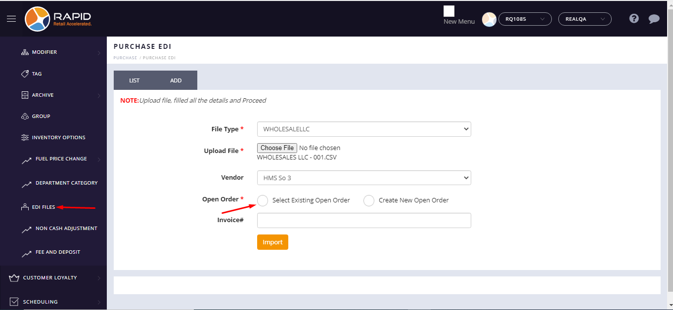 - Now go to the EDI purchase page.