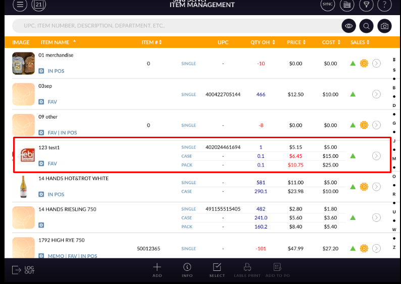 All the items which are available in-store display in the inventory management module Items section.