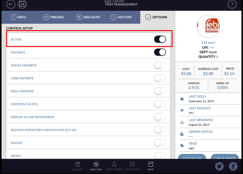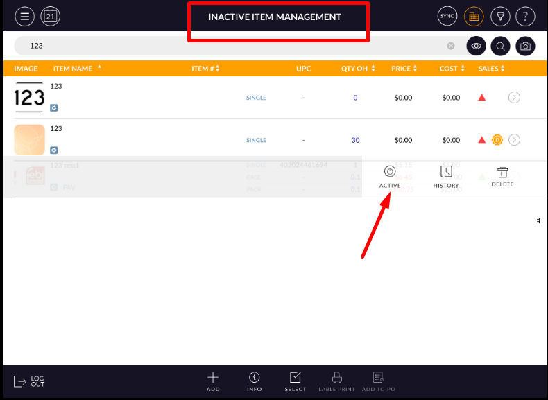 - Item will now display in the inactive list.