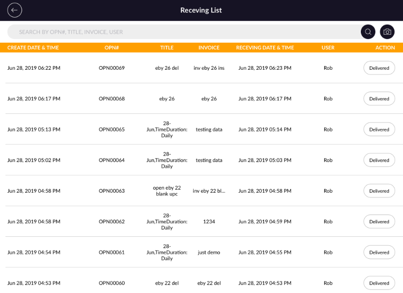 - It will display order details like Created Date & time, OPN#, title, invoice, delivery date & time,