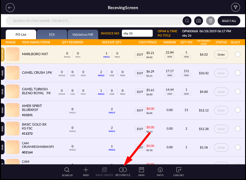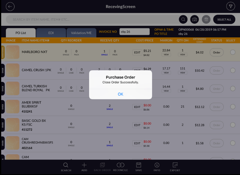 When you have received your given order from the vendor. We need to reconcile the order to update the inventory in our store.