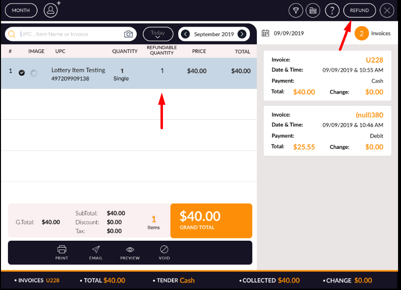 - Select all items available in the invoice or select only those item(S) which you want to refund.