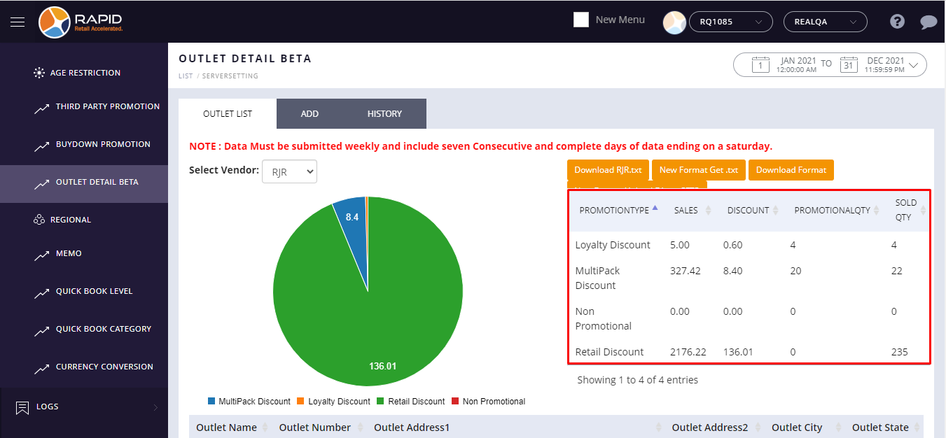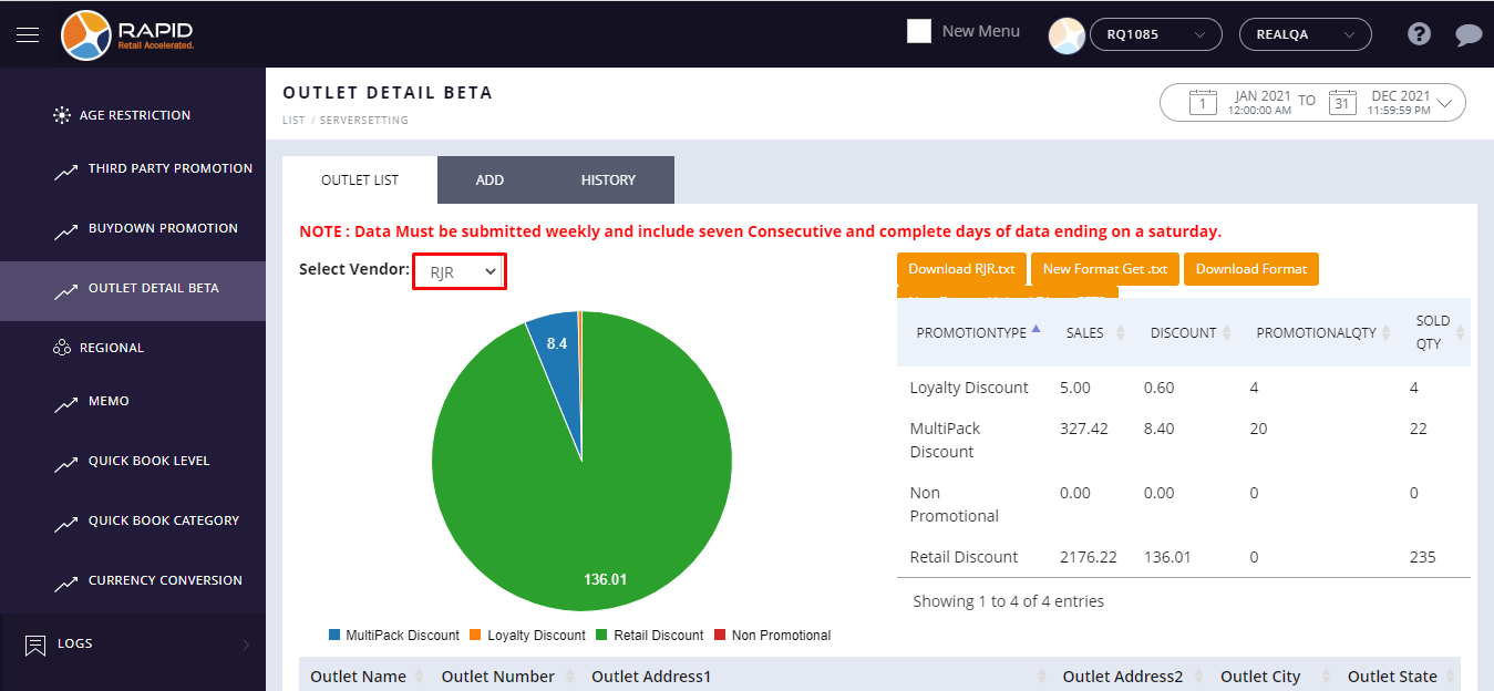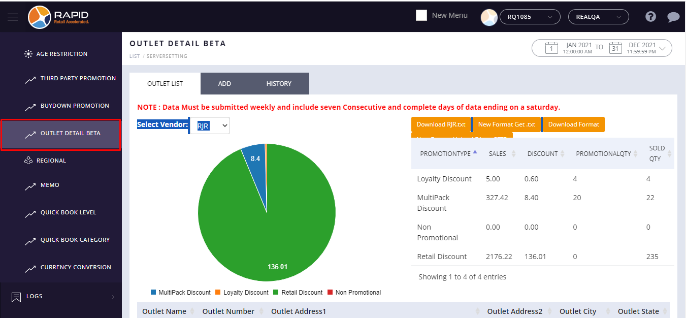 menu. - Choose the Outlet Detail Beta option from the settings.