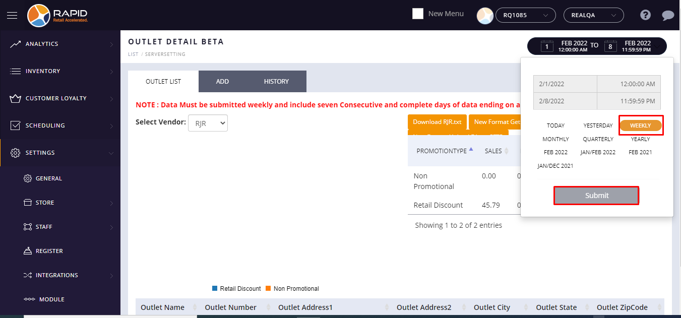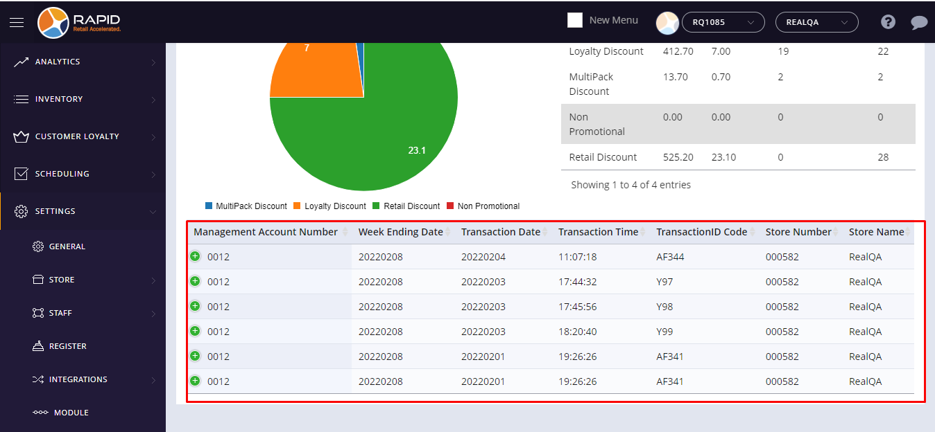 Note:- If you have taken any scan data transaction that will only appear every Sunday.